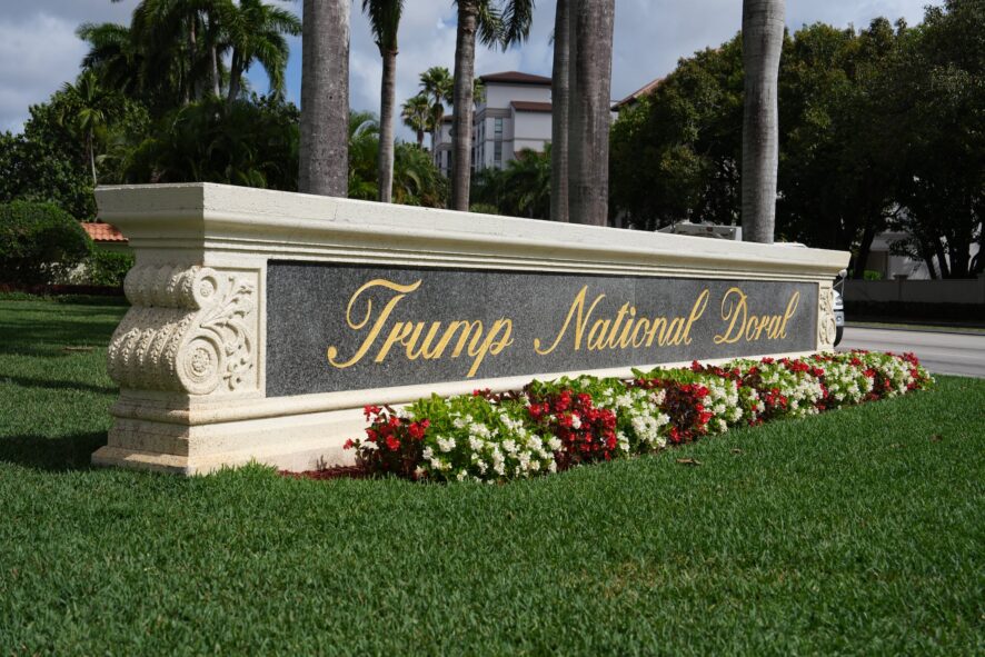 Entrada al club de golf Trump National Doral, escenario donde se realizará la cumbre Escudo de las Américas en Miami (EE.UU). FOTO UMBRAL.COM.DO