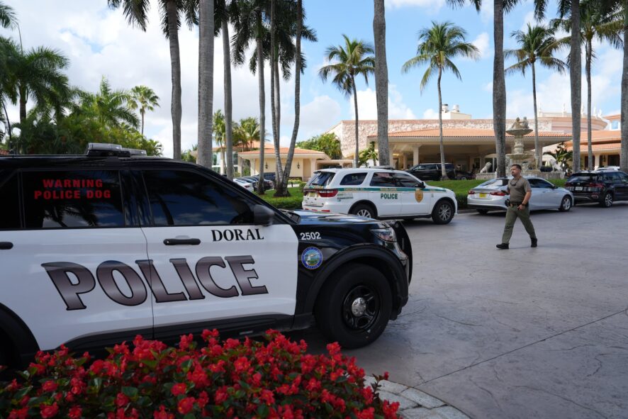 Imagen de la Policía custodiando el club de golf de Trump en el que se celebrará la cumbre Escudo de las Américas en Doral. FOTO UMBRAL.COM.DO