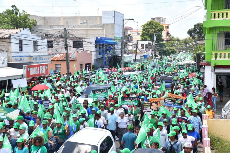 SANTO DOMINGO.— Bajo un sol inclemente y entre consignas que resonaron como sentencias políticas, una marea humana vestida de verde recorrió ayer los sectores populares del Distrito Nacional. La llamada “Marcha del Pueblo”, convocada por la Fuerza del Pueblo y encabezada por su presidente, el expresidente Leonel Fernández, transformó las calles en un tribunal simbólico donde se juzgó la gestión gubernamental frente al alto costo de la vida, la depreciación monetaria y el abandono del campo dominicano.