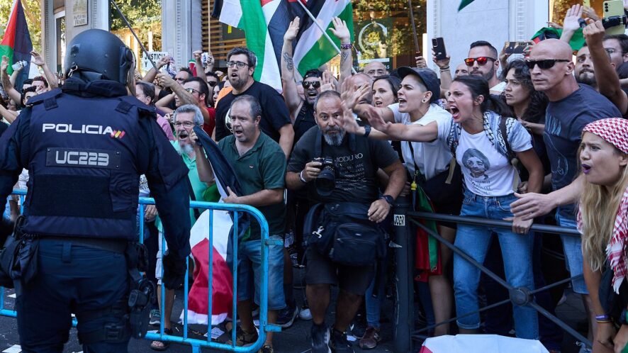 Desde primeras horas de la tarde, el centro de Madrid se transformó en un hervidero de banderas palestinas y consignas contra la ofensiva israelí en Gaza. Miles de manifestantes, convocados por el movimiento BDS (Boicot, Desinversión y Sanciones), bloquearon tramos clave del recorrido, coreando lemas como «Netanyahu asesino» o «No es una guerra, es un genocidio» . El dispositivo de seguridad, con 1.100 agentes desplegados —superior incluso al de la Cumbre de la OTAN de 2022—, resultó insuficiente para contener las protestas. En la Cuesta de Moyano y el Paseo del Prado, sentadas y barricadas simbólicas forzaron a la organización a suspender la etapa tras caídas de ciclistas y enfrentamientos con la policía .