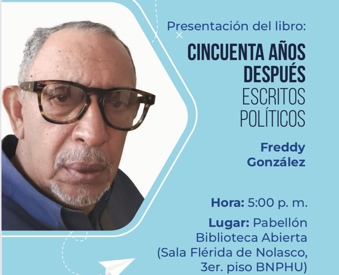 SANTO DOMINGO.- La memoria histórica de las luchas populares dominicanas encuentra hoy un nuevo altar en la XXVII Feria Internacional del Libro. A las cinco de la tarde, en el tercer piso de la Biblioteca Nacional Pedro Henríquez Ureña, será puesto en circulación «Cincuenta Años después, Escritos Políticos», obra obra política del revolucionario Freddy González, cuya presentación estará a cargo del intelectual y dirigente de izquierda Rafael Chaljub Mejía, en un acto que promete tender puentes entre generaciones de militantes sociales.